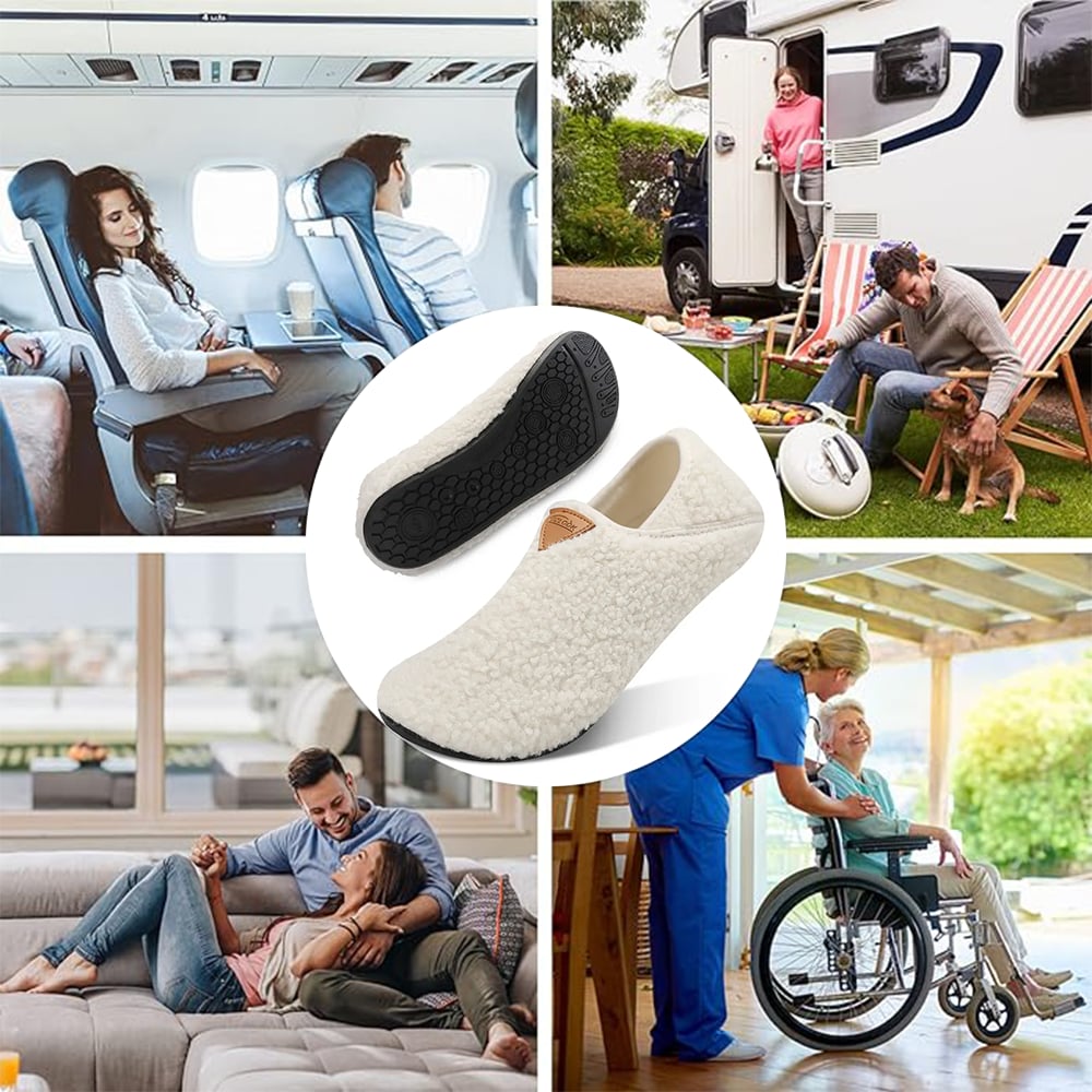 These slip-on house shoes are designed with a roomy wide toe box, supportive sole structure, and anti-slip rubber outsole — perfect for relaxing indoors or quick trips outside. 👣✨